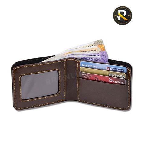 - Men’s wallet has 2 compartments for currency notes. It has slots for 3 cards and also has a slot for ID card and a hidden slot.