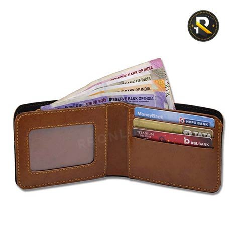 - Men’s wallet has 2 compartments for currency notes. It has slots for 3 cards and also has a slot for ID card and a hidden slot.